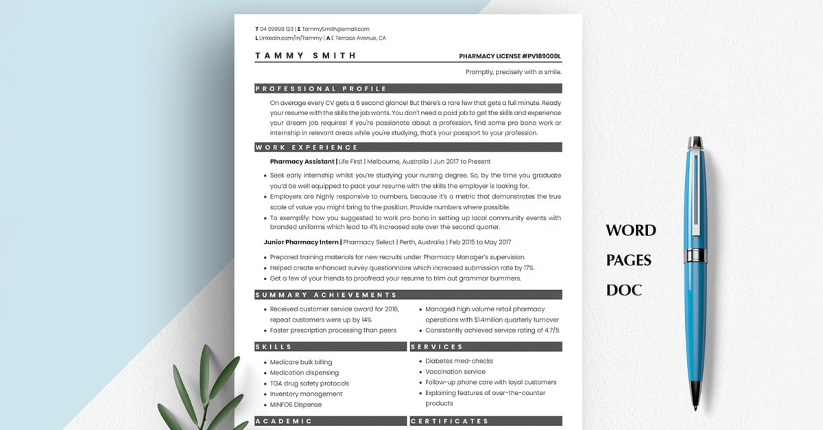 Read More »Pharmacist Resume Template | Pharmacy CV for Word, Google Docs & Pages | ATS Medical Resume
