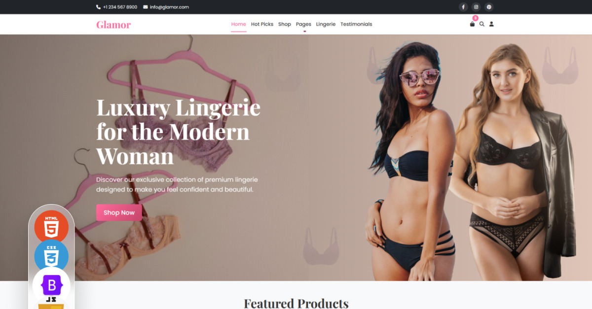 Glamor – Lingerie & Underwear HTML Template Glamor – Lingerie & Underwear HTML Template is a modern, stylish, and feature-rich solution specifically crafted for lingerie boutiques, women’s fashion retailers, beauty product shops, and multifunctional eCommerce stores. This premium template combines elegance and functionality, offering a visually captivating design that reflects …